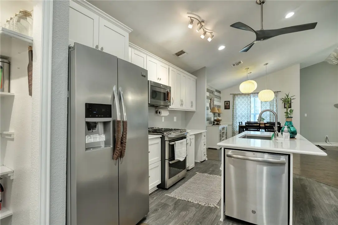 Furnished or Unfurnished- Beautiful fully remodeled home with desirable touches throughout, open floorplan, and vaulted ceilings kitchen features custom cabinetry and countertops, gas range, refrigerator, built-in microwave, wine cooler, large pantry, all kitchen utensilsdishes, all bed lining, towels, pillows included. Two-car garage and back yard features a large outdoor deck, perfect for entertaining large fenced-in yard with direct access to Walnut Creek Trail. This charming home showcases lots of niches and architectural features. WasherDryer Included! with quick access to major highwaystons of restaurants and shopping!! Great Neighborhood!!