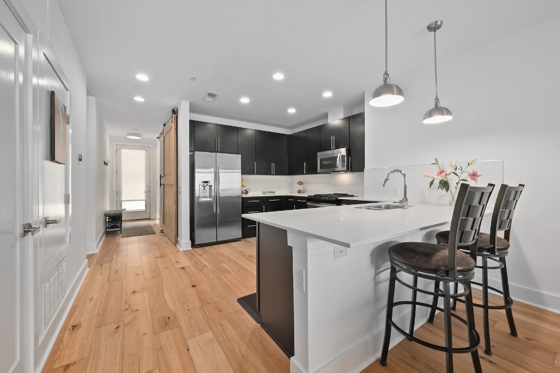 You just found the modern luxury condo in 78704 you have been looking to buy! Fall in love with the soaring ceilings and the open 1,344 sqft layout of this rarely available 3-bedroom and 2-bathroom condo. Featuring wide plank wood flooring in the living spaces with contemporary tile in the bathrooms. The spacious kitchen offers quartz countertops, a breakfast bar/island, dark shaker cabinets, the chef's gas range/oven, and stainless steel appliances. The large glass sliding door in the living room provides soul-enriching natural light into the condo and opens it up to a beautiful deck overlooking lush green spaces to enjoy morning coffee and peace. The Primary bedroom is spacious and offers a walk-in closet and a large bathroom with extra storage, dual vanity, a separate walk-in shower, and a soaking tub to melt life's stresses away. The community offers a pool, 2 dog parks, a clubhouse, BBQ Grills, and the Amphitheater. The Denizen owners also have the option to take part in a Community Garden located on the property run by the South Austin Community Garden (an independent neighborhood organization from the HOA) for a cost. This unit comes with a large single-car garage and one assigned parking spot. This condo is minutes away from Zilker Park, Lady Bird Lake, Rainey St District, Barton Springs, and Downtown Austin. Located near many tech employers and with an easy commute to major highways 71, I-35, Mopac Expwy, and the airport. Come home to love where you live and enjoy the True Austin Lifestyle you want!