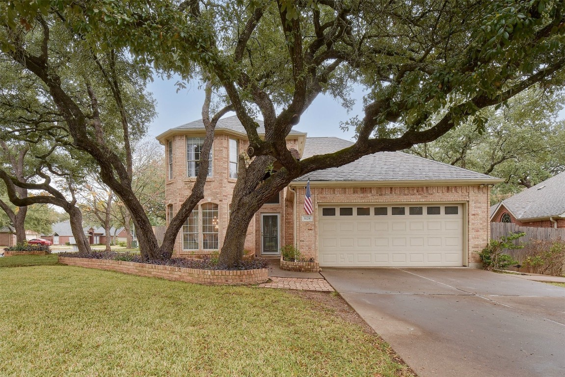 Nestled in Travis Country, this 4br2.5ba home presents a main level owners suite, a secondary living room upstairs, and a plethora of amenities at your fingertips, including pools and scenic, meandering trails just 1 mile away. The home boasts an inviting open-concept design, the crown molding elevates the elegant style, while a charming brick fireplace adds a warm touch. The kitchen is a true highlight, adorned with two-toned cabinetry, granite counters, SS appliances, a spacious island, and an adjacent breakfast nook for casual dining. A formal dining area features panoramic windows with a picturesque view of majestic oak trees outside. Retreat to the owners suite, where refined French doors open to a private enclosed patio, and the ensuite features a dual vanity, soaking tub, and a walk-in shower for a spa-like indulgence. Ascending to the second level, youre welcomed to a sizable secondary living room offering versatility for your needs. A custom barn door leads to one bedroom, while the opposite side hosts two bedrooms and a full bath with a dual vanity. The garage is upgraded with epoxy floors and convenient tool storage. Expansive green space envelops the front and backyards, offering a serene setting for relaxation or entertainment. A covered back patio, a storage shed, and an additional driveway leading to a concrete pad for extra parking further enhance the property. Facilitating an effortless transition to your new home, the fridge, washer, and dryer convey. Travis Country residents enjoy trails leading through Barton Creek to Twin Falls and Sculpture Falls, 2 pools, 2 playgrounds, numerous sports courts, and proximity to endless dining and retail options. The house is surrounded by mature oak trees on a spacious .2-acre corner lot. Experience a lifestyle defined by comfort and convenienceschedule a viewing today and step into your new haven!