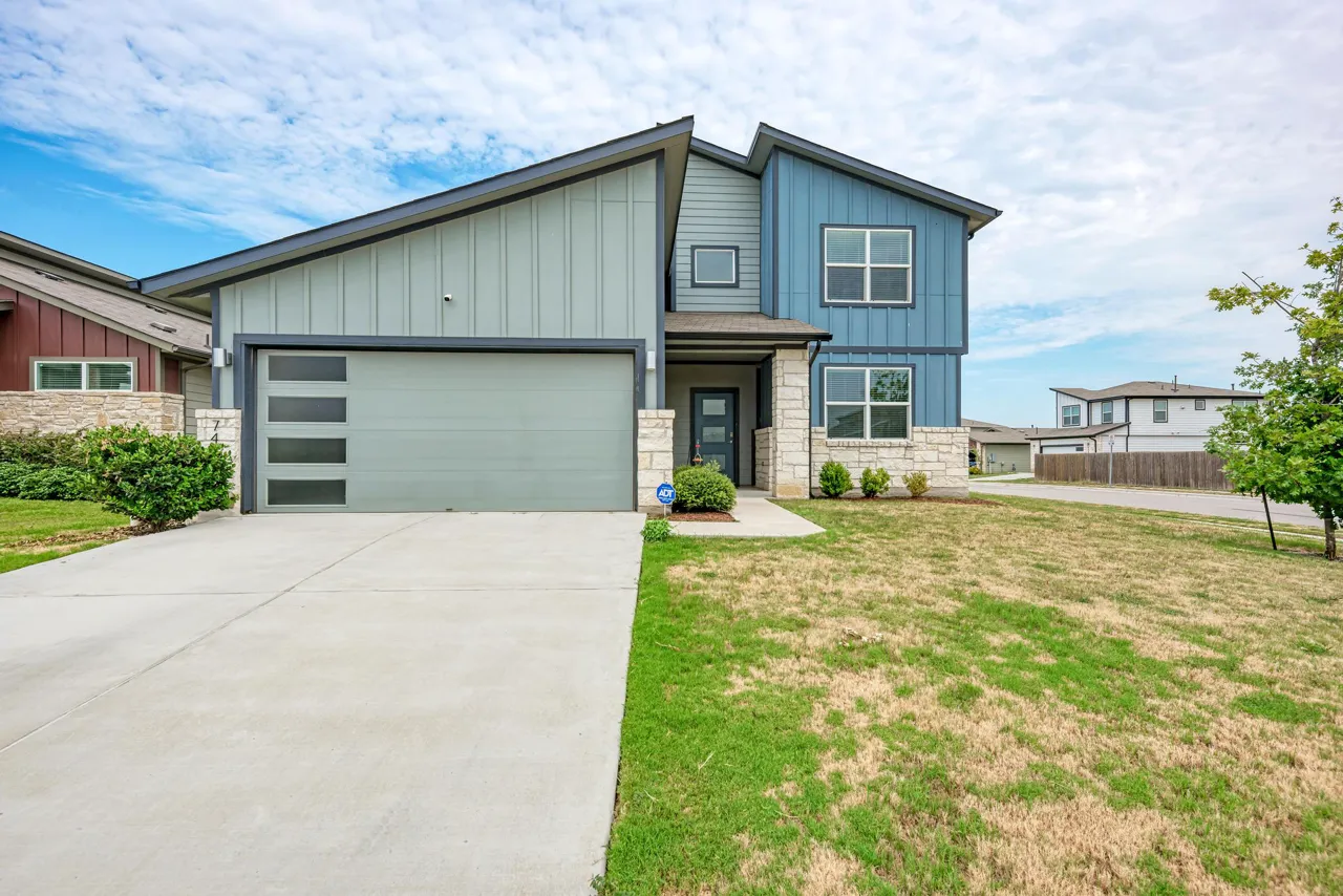 For Lease in NE Austin’s Parker Creek Ranch! Discover peaceful suburban living in this stunning contemporary home, ideally situated on a premium corner lot with scenic views and modern curb appeal. Located near the top of the community, enjoy elevated sightlines from several interior windows and the tranquility of nearby walking trails and HOA amenities. Built in 2021 and meticulously maintained, this 4BD/2.5BA home lives like new with soaring ceilings, recessed lighting, vinyl plank flooring, and sleek finishes throughout. Expansive windows flood the space with natural light, creating a bright, welcoming atmosphere. The open-concept main floor flows beautifully from the stylish island kitchen to the spacious living area, with plenty of room for a dining space in between. The kitchen features quartz countertops, stainless steel appliances, ample cabinetry, and bar seating at the island—perfect for entertaining. The main-level primary suite offers privacy and comfort with a spacious ensuite bath and walk-in closet. Upstairs, you'll find a versatile bonus living space, three secondary bedrooms, and a full bath—ideal for family, guests, or a home office setup. Enjoy sunrise and sunset views from both sides of the home, plus a large backyard with a covered patio and an upgraded additional cement patio for recreation and more. Smart thermostat, excellent storage, and a two-car garage add everyday convenience. Great location just 9 miles to Downtown Austin, 11 miles to the airport, and 16 miles to The Domain. Quick access to Decker Lake, MLK Blvd, with the Manor ISD elementary and middle schools just 1.5 miles away. Don’t miss your chance to lease this modern gem—schedule your showing today!