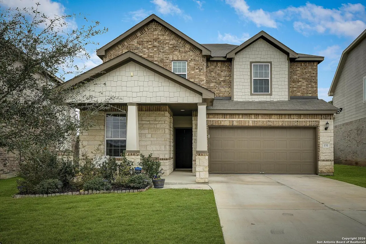 Welcome to 151 Inverness, a beautifully maintained 3-bedroom, 2.5-bath home built in 2022 and located in the quiet, highly desirable Southglen community. This home offers an ideal layout for both productivity and relaxation, featuring a dedicated downstairs study plus a secondary built-in workspace near the kitchen. The open-concept main level is anchored by a spacious kitchen equipped with a large island, gas cooktop, and built-in microwave and oven, all complemented by neutral finishes and abundant natural light. Upstairs, a versatile loft provides a second living area or game room, leading to the private bedrooms including a primary suite with a double vanity, separate tub and shower, and upgraded tile work. With no neighbors directly behind the property, the backyard offers enhanced privacy and features a large covered patio and a fully fenced lawn. Residents enjoy Southglens community amenities, including a swimming pool, playground, and grilling area, all within the award-winning Boerne school district. The location is exceptionally convenient, offering easy access to back roads into Boerne and Fair Oaks Ranch, while remaining just minutes from IH-10 for quick drives to La Cantera, The Rim and Lemon Creek. Homes in this neighborhood have been selling quickly and you are encouraged to set your appointment today! Grass color has been enhanced