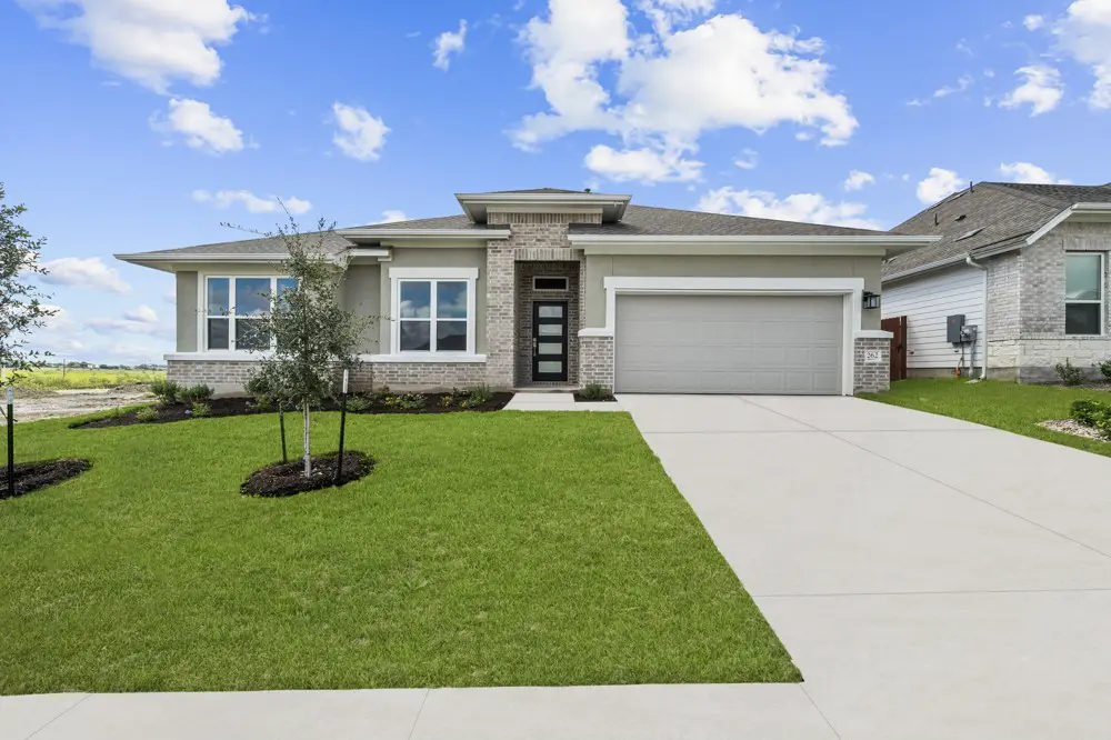 Discover the ideal fusion of functionality and elegance with this new floorplan in Sunfield, featuring 3-bedroom, 2-bathroom home with a study. Emulating the model homes sister floor plan, revel in a design that showcases a breathtaking wall of windows, tall ceilings, and an open concept. Luxuriate in the owners bathroom with a garden tub and find tranquility in the enclosed study. Outside, a low-maintenance backyard awaits in a community with 2 lazy rivers, extensive walking trails, and an array of amenities. Immerse yourself in a lifestyle of comfort and recreation, as this meticulously crafted home achieves the perfect harmony of luxury and convenience. Schedule a visit today to discover the familiar elegance and functionality that can be felt upon entry to each of our carefully curated homes! Our EnergySaver Homes offer peace of mind knowing your new home in Buda is minimizing your environmental footprint while saving energy. Square Footage is an estimate only actual construction may vary.
