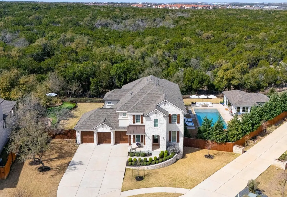 Nestled on an oversized .53-acre lot on a quiet cul-de-sac street, this stunning home in the prestigious Overlook section of The Ranch at Brushy Creek. Every inch of this property has been upgraded and elevated! The main house boasts 5 spacious bedrooms and 4.5 bathrooms, featuring a seamless open layout.The soaring ceilings and 8-foot doors create an expansive and airy atmosphere, with custom shutters and window treatments throughout.A chefs dream, the kitchen is equipped with high-end Thermador and Subzero appliances, complemented by floor-to-ceiling En Vogue custom shaker-style cabinetry, a large island, and a butlers pantry with a wine refrigerator. The grand primary suite offers a peaceful retreat, complete with a sitting room, deep inset tray ceilings, and bay windows that overlook the backyard oasis. The spa-like ensuite features floor-to-ceiling vanities, dual sinks, marble-inspired tile floors, and a frameless shower. The two walk-in closets offer ample storage space.Entertainment is taken to the next level with a tiered cinema room. The home also boasts a two-story wall of windows that floods the space with natural light.Outdoors, the home is equally impressive with an extraordinary entertaining space. The heated saltwater pool with spa features a built-in cleaning system, a tanningwading shelf, a 9-foot deep end, and multiple sun decks. Enjoy outdoor recreation with a putting green, raised garden beds, and a fully equipped outdoor kitchen perfect for hosting gatherings.The pool house adds an extra layer of luxury, offering a kitchen with stainless steel appliances, a bedroom, and a full bathroom, providing the ideal space for guests or as a private retreat.With a 3-car garage featuring stunning stained cedar garage doors, custom lighting, and a whole-house indoor-outdoor sound system, every detail has been carefully considered. The home is just a short walk to the Brushy Creek Trail System.Property magazine upon request