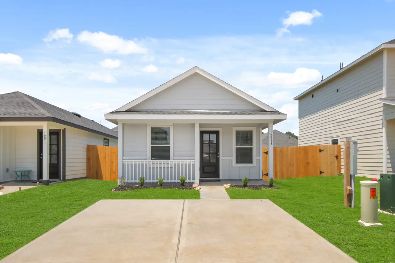 Incredible 1 story floorplan with 3 bedrooms and 2 baths. Beautiful kitchen with gray or white cabinets and granite countertops. Large Owners suite with private bath. Charming cottage series with front porch and landscape. 2 more additional bedrooms with one added bath convenient for guest to have privacy or a roommate. This is in Marie Village . One of Conroes premier communities. Get approved!