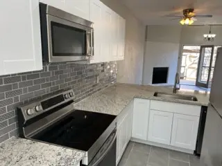 Newly renovated condo, lots of light, in coveted Glen Oaks gated community. Large, spacious interior unit with stylish laminate floors, granite countertops, new appliances, renovated bathroom & washer-dryer connection. cozy living room with a fireplace & dining room.private, fenced-in patio.the complex has community pool to enjoy in the hot summer days,lots of trees, beautifully maintained.easy access to 635, 75 Garland Richardson and Dallas.Richardson ISD.
