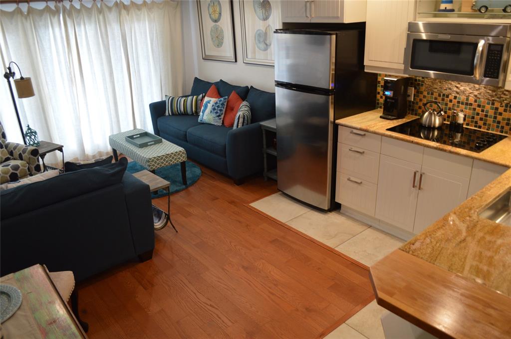 Beautifully, totally remodeled, beachy schic style, condo. Also features a large balcony with a view of the gulf and pelicans! Full size kitchen with granite counter tops, full size, four burner, cooktop, Microwave/convection oven, dish washer, extra wide deep stainless sink with recent faucet. Don’t use the the laundromat use your own Large oversized, large capacity, stackable washer/dryer that’s in the condo and comes with the sale; NOTE: NONE OF THE OTHER CONDOS FOR SALE HAVE A, FULL SIZED, WASHER/DRYER, IN THEIR CONDO. The totally remodeled bathroom has a subway tile shower surround and tiles four feet up for an eligant country look!! is a plus along with the granite counter. High pressure shower never runs out of hot water. The master bedroom is spacious because of the new barn door, elsa system in the closets. NEW A/C IN 2016, INSIDE AND OUTSIDE...OWNER IS A REALTOR.