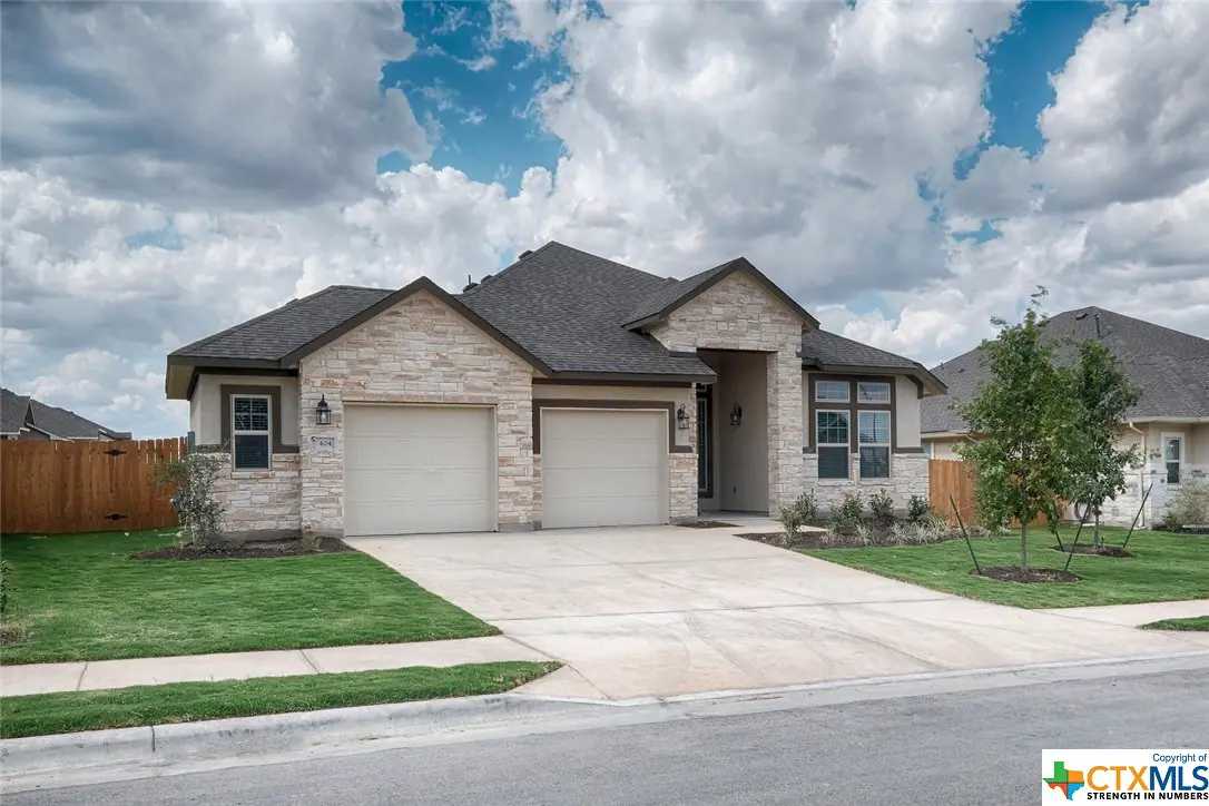 Elegant & stylish 1 story home with 4 Beds, 3 Baths & oversized 2 car garage! Stone & stucco exterior with 8 front door and grand entrance. Lofty ceilings, stunning archways & oversized windows throughout. Gourmet kitchen showcases sprawling island, farmhouse sink, walk-in pantry, exotic granite & stainless appliances. Relax in this spacious master suite ,walk in shower, soaking tub, & massive closet! Wood like tile floors, sprinkler sys, HUGE covered patio and 1 block to pol, amenities, & schools! Great schools & location. Minutes to shopping, entertainment, restaurants, hospitals. Easy access to IH 35 and Toll 130. Welcome Home!