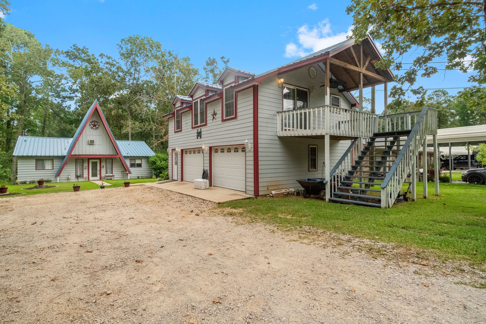 Escape the city life and get away to this little piece of East Texas. This amazing property has plenty of amenities to offer! This 2 bedroom (Oversized loft can easily be used for a 3rd bedroom) sitting on just over a half acre of beautiful San Augustine grass, also boast a 1/1 living quarters: open concept, OVERSIZED bedroom with walk-in closet above the detached 2 car garage. You have access to all the water you can handle here, from the canal frontage in your backyard AND the above ground pool in you back yard AND the THREE private lakes (one is a boat and ski lake) AND the community swimming pool, you can swim and fish as much as you want! You can enjoy this unique home and still be under an hours drive from the Houston area 10 minutes from Livingston and approximately 30 minutes from the Naskila Gaming Center (Casino)located at the Alabama Coushatta Indian Reservation. Come check this out!