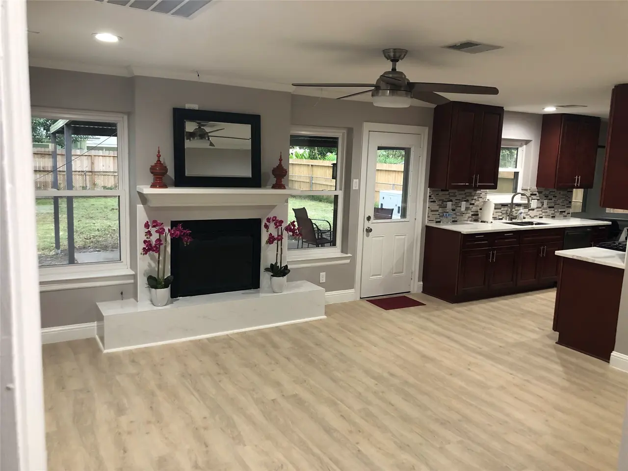 Completely Remodeled like a new home inside out! New Kitchen with ALL brand-new cabinets, fridge, and appliances. White Quartz Countertop with beautiful veins and bands pattern. Entire house has been retrofitted with LED lights and flat d&xE9cor switches. Brand-new durable and waterproof white oak-look Luxury Vinyl Plank (LVP) installed entire house. Grande Walk-in Shower with Rainfall Shower hood with multi-functional side waterjets with a huge seat. New HVAC systems. New hardie plank siding. Spacious closets and LOW E-Windows. Huge back-yard covered patio. Convenient location and close to Energy Corridor, Hwy access, Memorial City Mall, City Centre and Spring Branch School District.