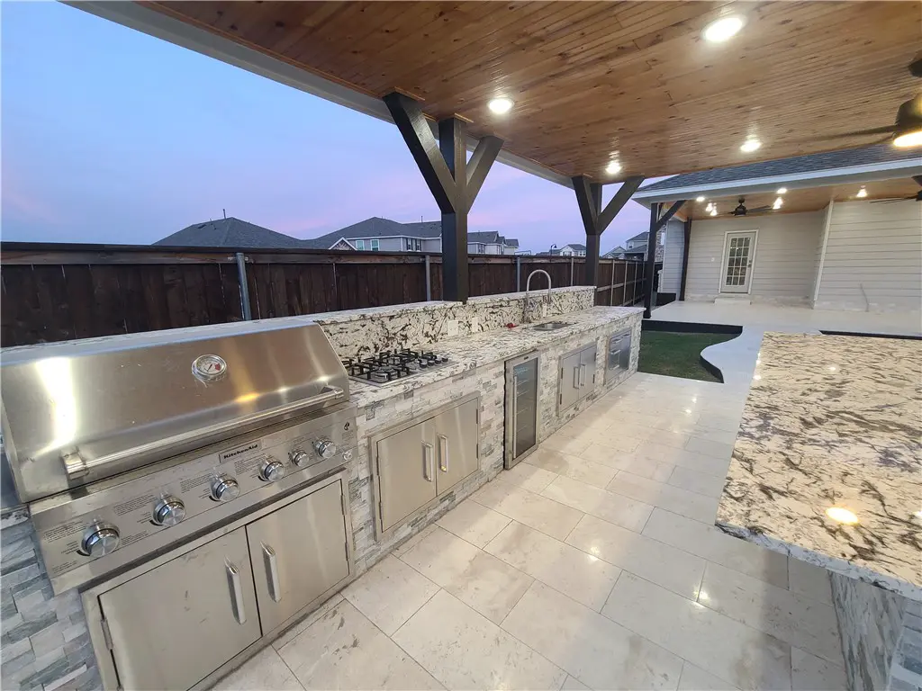 Exquisite Entertainers Dream loaded with upgrades in every room. 2 Master Suites, 4 bedroom total, 3 Full Baths, 2 Half baths, Game Room, Open Concept Living, luxury outdoor kitchen, gazebo, oversized covered patio, and outdoor half bath. This home is a must see. Situated in the acclaimed Villas at Star Ranch subdivision and just over a year old, this home has so much to offer. The designer upgrades throughout this house are exceptional. No Carpet with designer marble tile spanning the main floor and hard woods on the stairs and upper level. Stunning kitchen features upgraded Granite countertops, popular white cabinets with brushed gold hardware and fixtures, stainless steel appliances, custom tile backsplash, and stainless steel farmhouse sink. Kitchen opens up living room and dining room with beautiful white stone fireplace, and crown molding. The main level has your first master suite with walk in closet, double vanity with granite countertops, custom tile in the shower and high end oversized shower head with many spray features. Upstairs you will find your spacious game room, second master suite, 2 more bedrooms and another full bathroom, all featuring the custom features and upgrades you will find throughout the home. YOU wont want to miss the backyard stunner in this home. An backyard space made for entertaining and enjoying the outdoors. Exquisite luxury gazebo with full kitchen including wine fridge, built in grill, stove top, sink, granite counter-tops, and huge center island. The large storage shed is complete with a fully finished 12 bath. Oversized covered patio spans the length of the home with wood finished ceiling and 3 ceiling fans to keep cool in the summer. 2 car garage, security system, and smart home features are just a few extras you will find in this home. Easy access to all shopping, new samsung plant, and Tesla. Dont miss out, Come see it today!