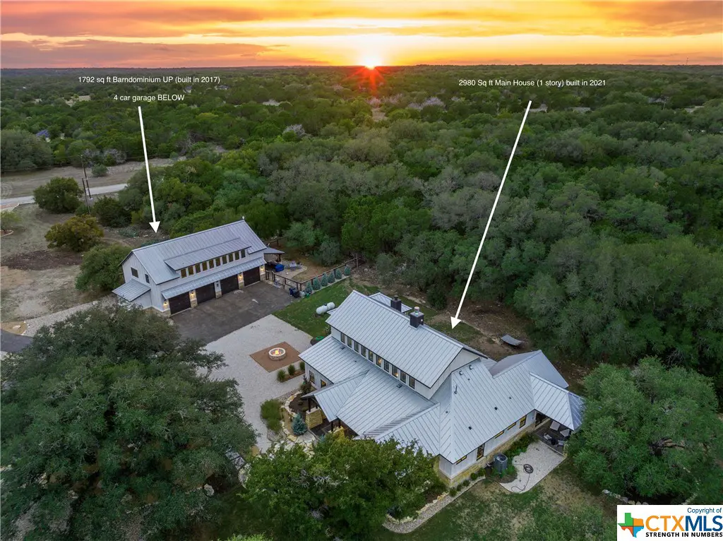 Looking for 21+ acres with TWO homes on it: a 2980 sq ft main house & 1792 sq ft barndominium located over a 4 car garage. Both are the perfect combination of modern farmhouse elegance & luxury, metal roofs, board & batten style of stucco exterior & stone wainscoting. Main house is 2980 sq ft (per builder), built in 2021, & features 26 stained wood plank ceilings, white shiplap walls, & gourmet kitchen with 2 islands, butlers pantry, & Thor 6-burner gas range with double oven. It also has 3 bedrooms & 3 full baths. The en-suite boasts a huge soaking tub, curb-less walk-in shower with 2 shower heads, & bench. Barndominium has 2 bedrooms, 1 full bath upstairs, & a kitchen with lots of counters & cabinet space. Downstairs is the 4 car garage & features a bathroom, laundry room, & entrance onto a covered patio with fenced yard. The massive steel workshop measures 50x90 with a 16 eave height, with 14x14 end doors, (3) 10x10 side roll-up doors, & pedestrian door.