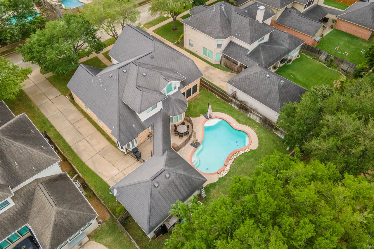 Breathtaking two-story home featuring an impressive entrance and grand foyer, complete with a striking curved staircase! Designed for both comfort and elegance, this spacious residence boasts 5-bedrooms and 4 full baths, offering a well thought out floor plan with 2 beds and 2 full baths downstairs, and 3 additional beds and 2 baths upstairs. The chefs kitchen is a true centerpiece, showcasing luxurious granite countertops, a center-island with built-in 2023 cooktop, and a spacious bar counter, perfect for entertaining. The formal dining room provides an elegant space for gatherings, while the dedicated study and game room offer flexibility for work and leisure. The downstairs primary suite has 2 walk-in closets, an en-suite bathroom featuring a standing shower, tub, and dual vanities. The outdoor space is just as impressive, featuring a sparkling pool, a covered patio, and plenty of room to relax or entertain. Zoned to Excellent Katy Schools! Dont miss the chance to make it yours!