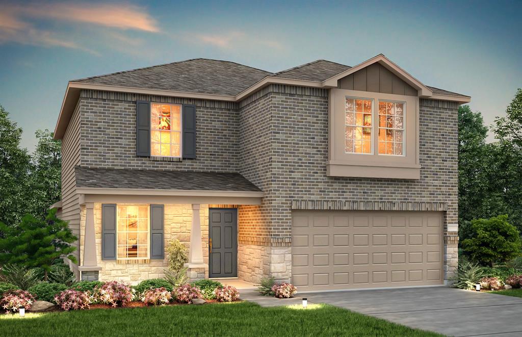 This two story has 4 bedrooms, 2.5 bathrooms, study, and game room. Many of the homes features include a brick and stone elevation, upgraded 42" cabinets, granite counter tops, stainless steel appliances including the fridge, vinyl wood-look flooring throughout the main living area, smart home, 2" faux wood blinds, irrigation system with full sod.