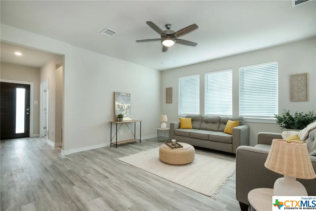 Amazing opportunity located in Leanders highly sought-after master-planned community of Deerbrooke. This stunning home features 3 Bedrooms, 2 bathrooms, PLUS study, 2 car garage, Open floor plan, Light & Bright wlots of windows, Spacious Kitchen with quality cabinetry, Granite countertops, upgraded kitchen backsplash, center island, pantry, recessed lights, stainless steel appliance package includes GE freestanding 5 burner range, dishwasher, and microwave. Other features include Fenced Yard, a unique covered patio style, blinds, and a water softener loop. Wonderful street appeal with stone and Brick exterior, lush landscaping with a sprinkler system. Neighborhood Amenities Upscale Health & Fitness Center, Open-Air Pavilion, Infinity-Edge Pool, Community Center and a beautiful walking Trail. Located nearby HEB Plus, St. Davids Emergency Center, ACC San Gabriel Campus, and Approximately 20 mi to Apple Campus, Whole Foods, 1890 Ranch, Costco, and much more!!