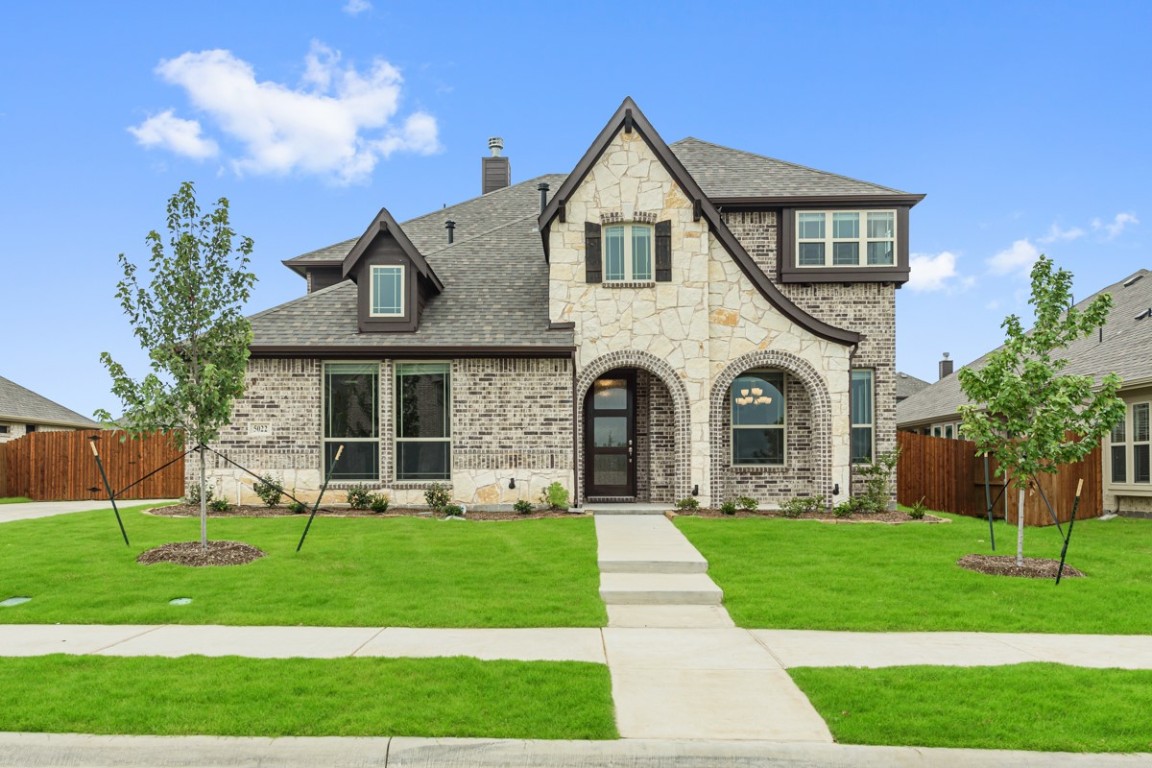 New Bloomfield Home READY NOW! The Dewberry 3 is a two-story offering 5 large bedrooms, 3 baths, Powder Room, exposed Formal Dining Room, and Game room flex space upstairs. Spacious, open-concept Kitchen off of the Family room and window-lined walls look out to the backyard, with Engineered Wood floors throughout common areas. Deluxe Kitchen includes a beautiful center island with custom cabinets, built-in SS appliances, upgraded backsplash, and a massive walk-in pantry - This is a Texas-sized kitchen! Well-selected exterior with a Stone & brick combination front, custom 8' front door, 3-car garage with cedar garage doors, and fresh landscaping. Primary Suite downstairs; 4 more bedrooms upstairs including a spacious Jr Suite. Other great features like an Extended Covered Rear Patio, Fireplace added to the Family Room, and don't forget to ask about the energy-efficient features! Call or visit Bloomfield at Wind Ridge to learn more about this popular plan.