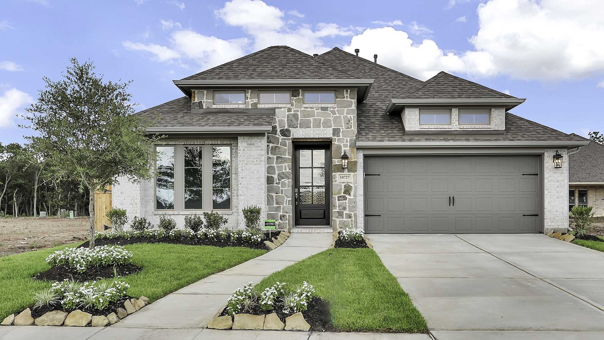 Perry Homes New Construction! Home office with French doors set at entry with 12-foot ceiling. Extended entry leads past formal dining room to open family room, kitchen, and morning area. Family room features wall of windows. Kitchen features island with built-in seating space. Primary suite with wall of windows. Dual vanities, garden tub, separate glass-enclosed shower and large walk-in closet in primary bath. A guest suite with private bath adds to this four-bedroom design. Extended covered backyard patio. Two-car garage.