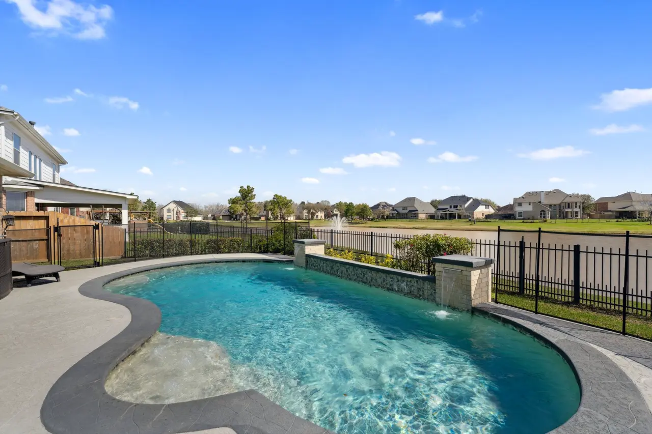 This gorgeous 4 bedroom, 3.5 bathroom lakefront home in The Lakes of Highland Glen is a must see. With over 4,0000 square feet of living space, this home offers an open floor plan perfect for both entertaining & family living. The updated kitchen features quartz countertops, a large island & stainless steel appliances, flowing seamlessly into the inviting living area boasting soaring ceilings & backyard pool & lake views. The first-floor primary suite includes a luxurious updated ensuite bathroom & walk-in closet. Also on the first-floor is a formal dining room + an adjacent study perfect for working from home or a playroom. Upstairs, youll find three additional bedrooms, two bathrooms, & a game room w a private balcony w breathtaking views. Outside, indulge in the backyard oasis with a private pool, covered patio & dreamy water views. An attached three-car garage + new roof in 2025! Located within top-rated Pearland ISD, this home is close to parks, shopping, and dining.