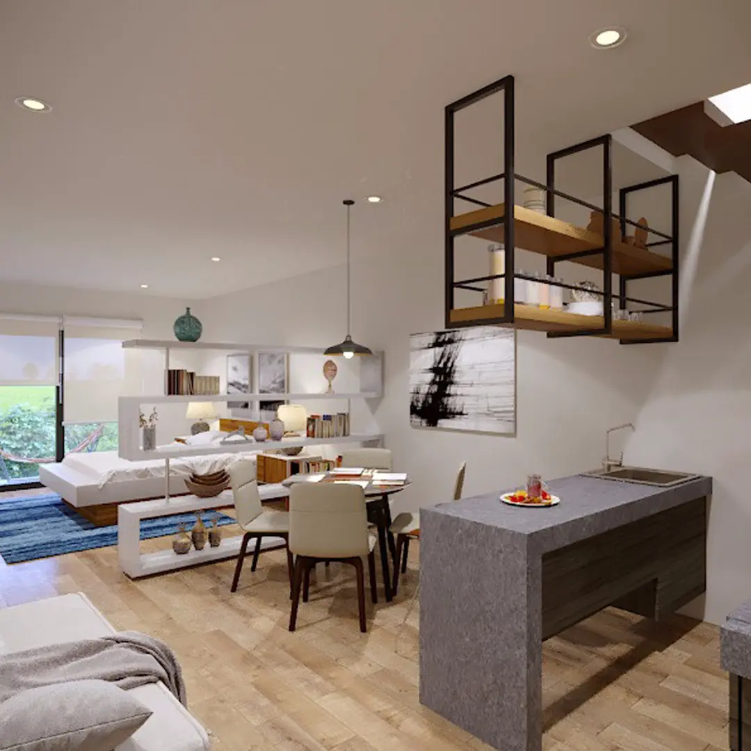 Located in the heart of downtown Playa del Carmen, and just a few steps from Fifth Avenue and a few minutes from the beach. Concept of bio-construction with modern facilities that extend to the hanging gardens, arranged on a construction organized in different levels of terraces, where lush vegetation sprouts and protrudes from the balconies, creating the effect of being suspended in the air. . A haven of tranquility with waterfalls of green, oxygen and cool terraces interconnected with nature Amenities: A bar with exclusive and luxurious bar service wellness center with Jacuzzi, relaxation area, gym, bathroom and an exclusive hammock area in where you will connect with the best of your interior. This fantastic terrace also includes incredible views of the sea, moments of inspiration and an atmosphere perfect for personal well-being.
