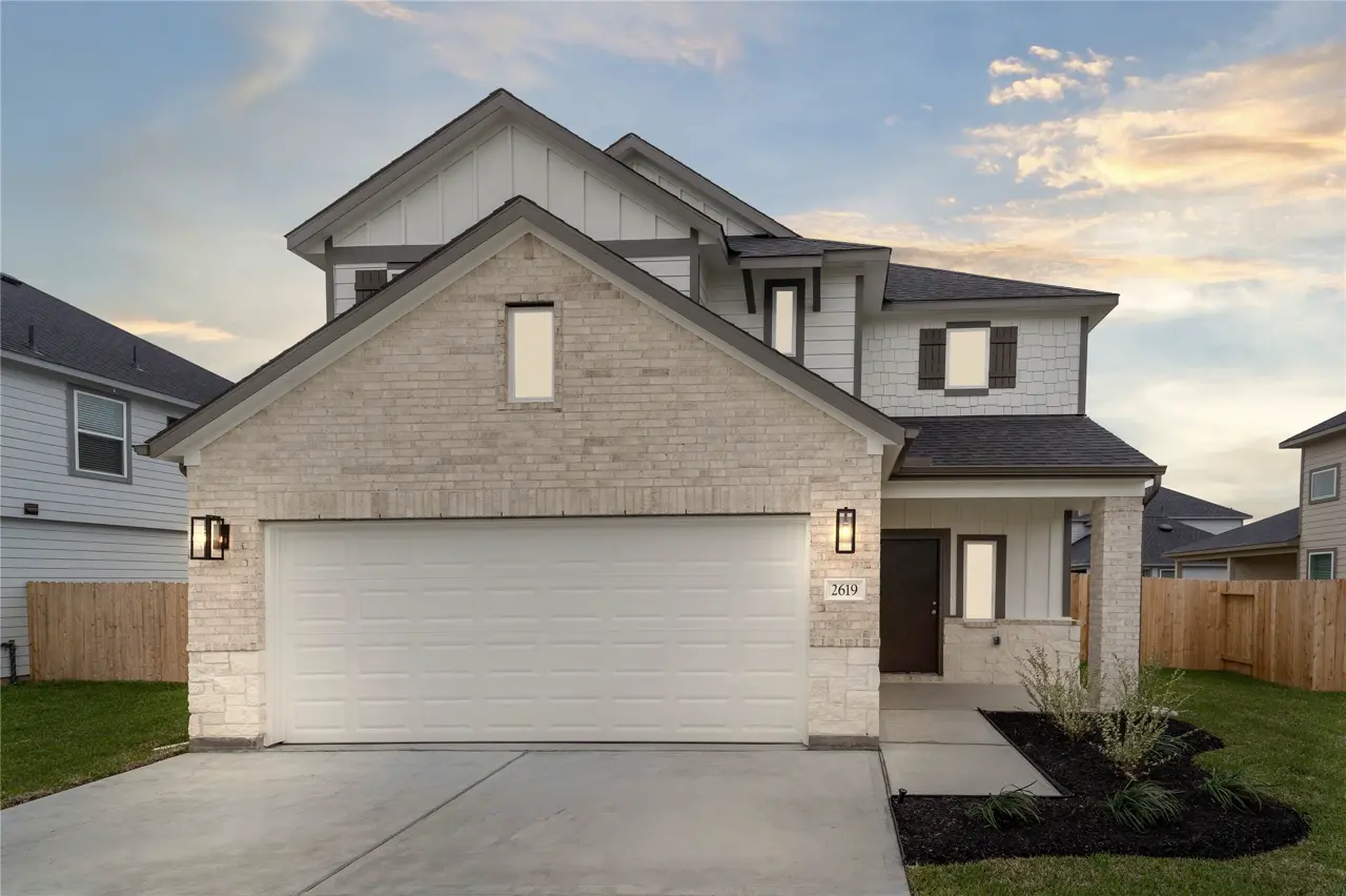 LONG LAKE NEW CONSTRUCTION - Welcome home to 2619 Village Side Trail located in the community of Fairpark Village and zoned to Lamar ISD. This floor plan features 3 bedrooms, 2 full baths, 1 half bath and an attached 2-car garage. This charming home features ceiling fans in the primary bedroom and family room, black exterior coach lights, 2" faux wood blinds throughout entire home, fully soded home with sprinkler system, front gutters, and an extended covered patio in the back. You don't want to miss all this gorgeous home has to offer! Call to schedule your showing today!
