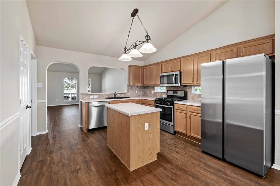 Ready now! CLEAN. These owners care! Fresh interior paint throughout home. New carpet. New kitchen appliances. This Turtle Creek one-story offers a functional, 4bedroom, 2bathroom floor plan. Bedroom 4 - at front of house, has a closet - would also make nice officestudydenkids play room. Open living area - with vinyl plank flooring through all main areas. Kitchen has island, new Whirlpool stainless steel appliances and a new Samsung refrigerator. Separate laundry room off kitchen. Two-car attached garage, alley access. Primary bedroom suite has ceiling fan, bathroom with dual vanities, garden tub, separate shower & a walk-in closet with built in closet system. Sprinkler system. Enjoy the Turtle Creek community pool, playgrounds, walking trails. Super easy access to A.W. Grimes13045I35. Close to grocery & coffee. Walking distance to Neysa Callison Elementary School. *Listing agent has familial relationship with Owners.