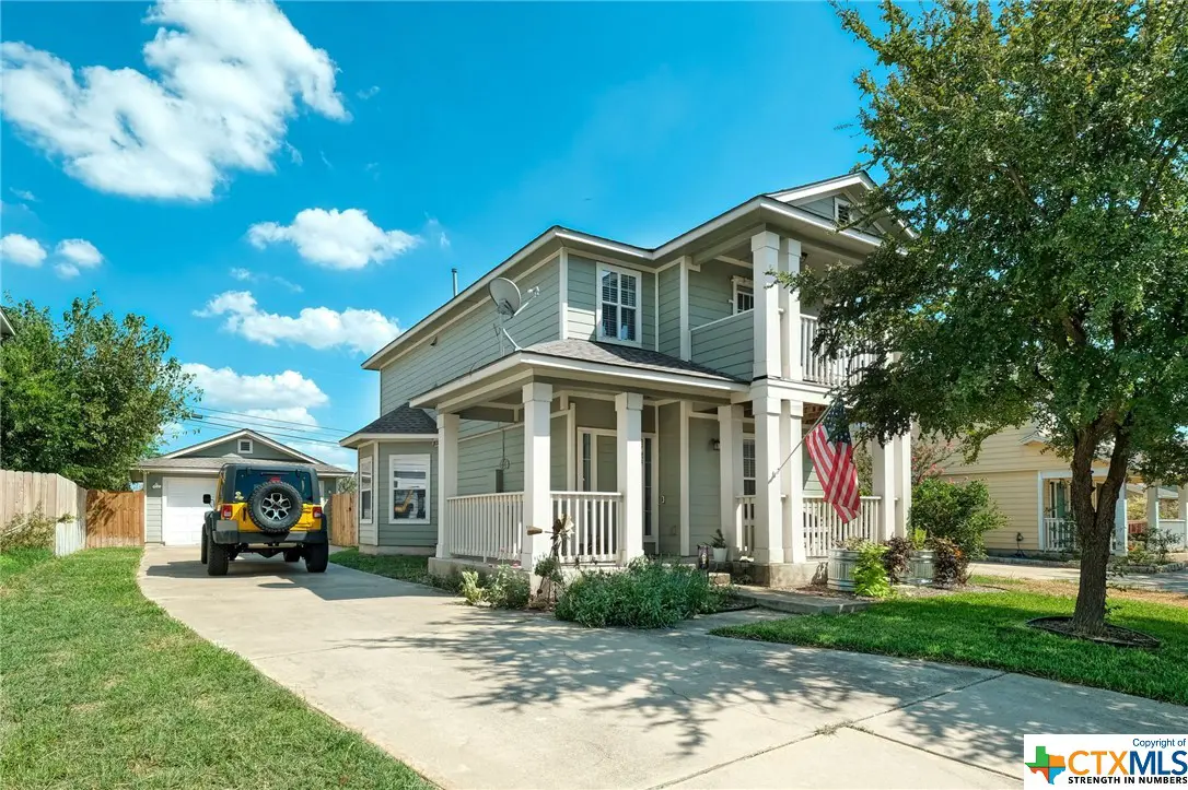 Welcome to this exquisite 3-bedroom, 2 12-bath residence. The moment you step inside, youll notice the absence of carpet, replaced by elegant vinyl plank flooring that gracefully extends throughout the home. The heart of this dwelling boasts a sophisticated kitchen outfitted with stainless steel appliances and beautiful quartz countertops, offering both style and functionality. The kitchen seamlessly flows into an open living room, creating a harmonious living space that is perfect for both entertaining and everyday living. As you ascend the stairs, youll find the three bedrooms, each providing comfort and privacy.From the third bedroom, step outside onto the covered balcony, where you can unwind. The rear of the home features a covered porch that leads to a generously sized backyard, inviting you to embrace the pleasures of outdoor living. With a detached 2-car garage and an extended driveway, parking is never a concern. This home also offers the modern conveniences of security cameras and a smart thermostat, enhancing your peace of mind and energy efficiency. The stainless steel refrigerator, washer, and dryer are included, simplifying your move-in process. Located in a central hub, this property enjoys close proximity to Old Settlers Park, The Dell Diamond, Kalahari, as well as an array of shopping and dining options. Welcome to your new home, where every detail has been carefully considered to offer you a life of comfort and convenience!