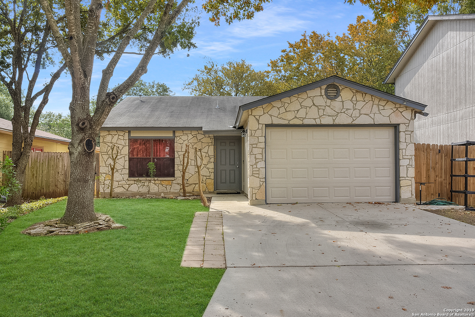Cozy rock home in a great community is move-in ready! Generously sized living room & bedroom's with walk-in closets. Recent improvements include carpet in bedrooms, hardy plank siding, exterior paint, master bathroom renovation & exterior paint. Conveniently located near 1604, NISD schools, Fiesta Texas, UTSA, Valero, USAA, LaCantera & The Rim.